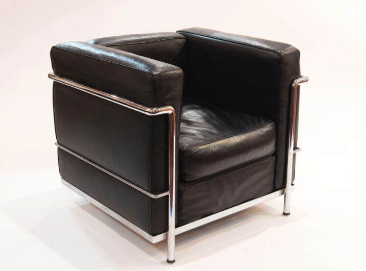 One of six leather and chrome LC2 club chairs by Le Corbusier for Cassina.