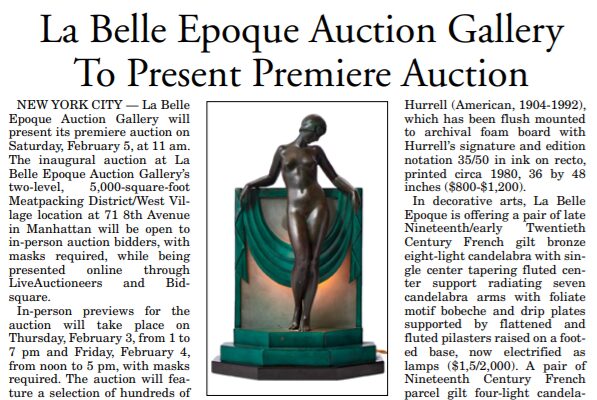 La Belle Epoque Auction Gallery presentspremiere auction February 5th in Manhattan