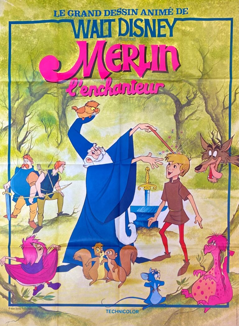 Original Vintage French Disney Movie Poster ‘Merlin L’Enchanteur’ (The Sword in the Stone), 1963