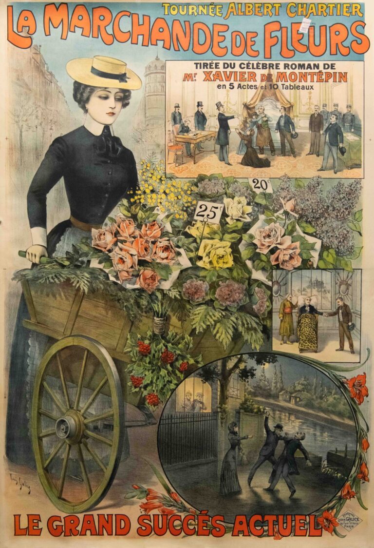 Original Vintage French Theatre Poster ‘La Marchande de Fleurs’ by Louis Galice, 1898