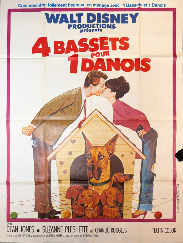 Original Vintage French Disney Movie Poster ‘4 Bassets Pour 1 Danois (The Ugly Dachshund)’ 1966